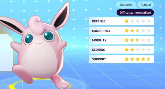 Wigglytuff is a ranged-support type Pokémon in Pokémon Unite. He may lack raw damage or mobility. However that is easily countered by Wigglytuff’s amazing support abilities that can easily stop opponents on their tracks, giving other teammates a chance to blast the opponents with barrage of attacks.