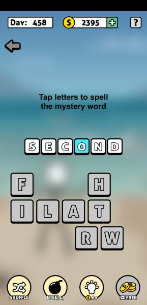 Words Story Answers: Level 458: Second