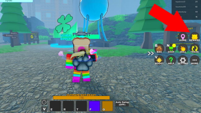Redeeming codes in RPG Champions is very easy! All you have to do is click on the rewards button, which is the golden chest on the right side of the screen. Note that the side menu is collapsible, so if you don’t see anything, make sure to click on the two white arrows to open the menu up.