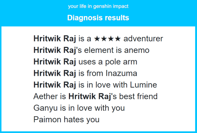 Alike many other community-made mini-game on Genshin Impact, players can head to the quiz/mini-game page, enter their name in the given field and click on diagnose to check the results.
